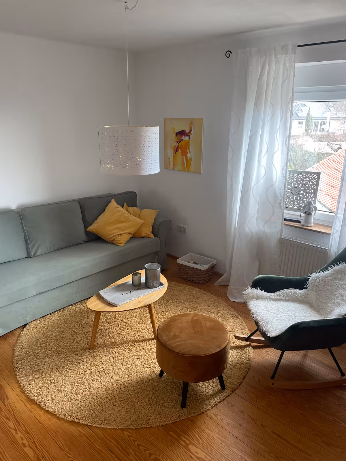 Im ganzen Haus sind Echtholzböden. Wir bitten Dich Deine Schuhe durch bereitgestellte Hausschuhe zu ersetzen, um den Boden zu schonen.