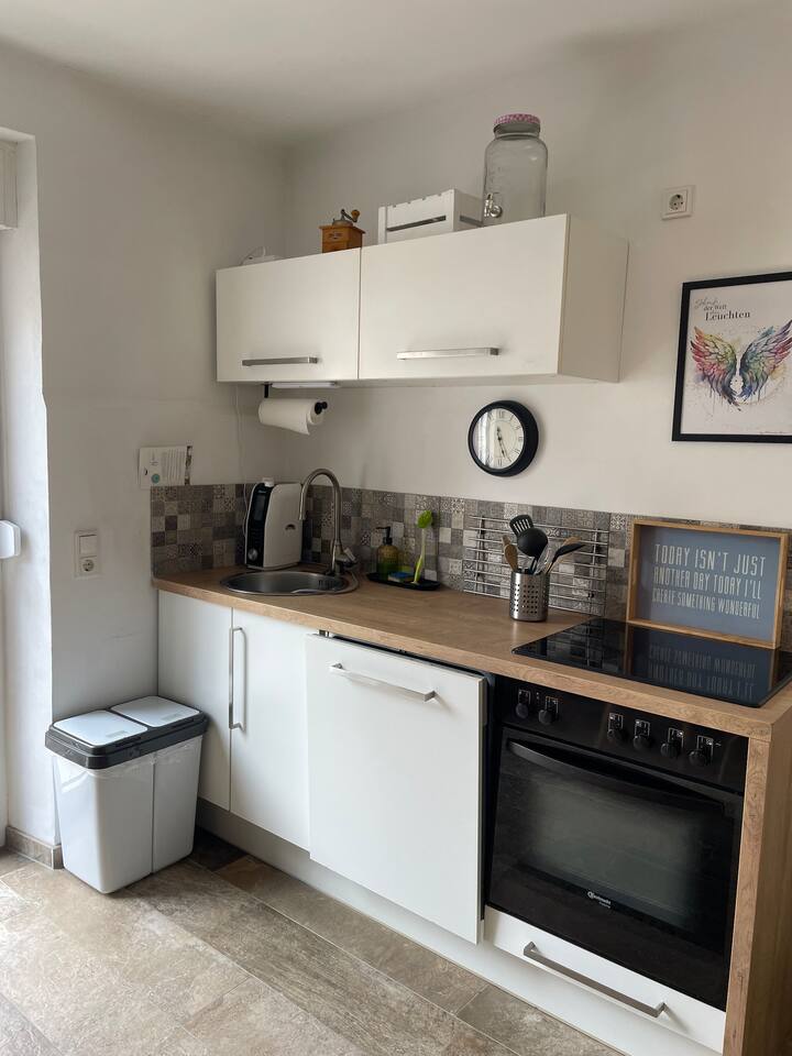 Im Erdgeschoss befindet sich dich gemütliche voll ausgestattete Wohnkueche, mit großem Esstisch, Backofen, Toaster, Wasserkocher, Kaffeemaschine (Senseo), Kühlschrank mit Gefrierfach und besonderes Highlight: ein Aquion Wasserfiltergerät.